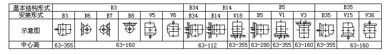| B3:机座带底脚,端盖上无凸缘的结构型式 |